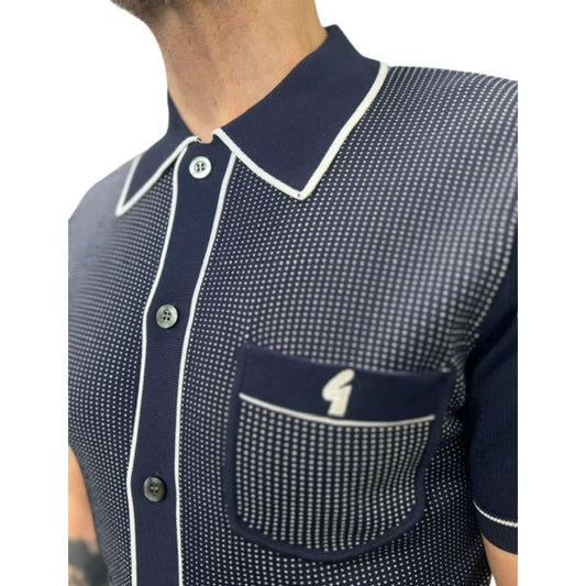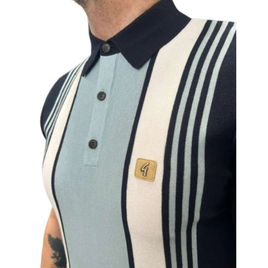 Searle Striped Knitted Polo Shirt - Navy