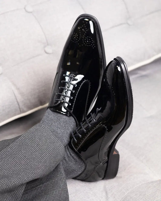 Ricardo Semi Brogue Derby Shoes - Black