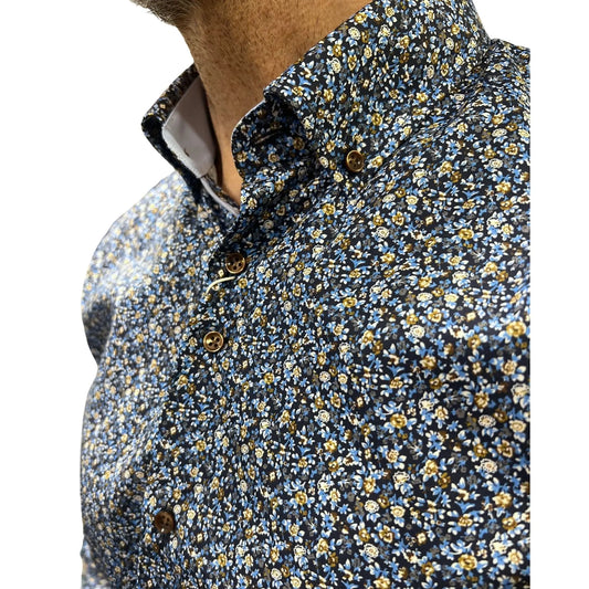 Abstract Floral Print Cut Away Collar Shirt - Sky Blue