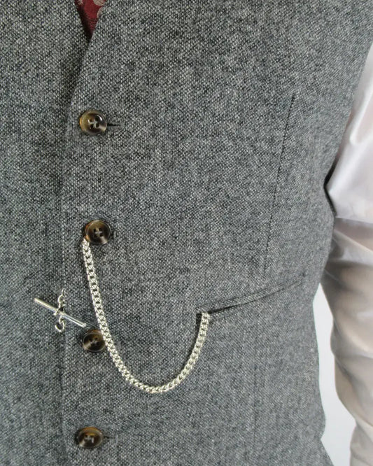 Shawl Collar Dinner Suit Waistcoat - Charcoal Grey / Black