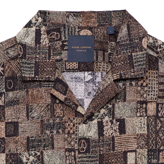 Abstract Patch Print Shirt - Brown/Black