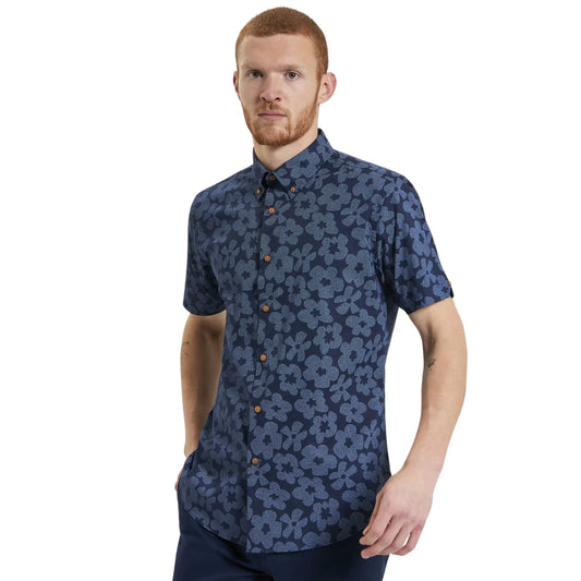 Stipple Floral Short Sleeve Shirt - Navy