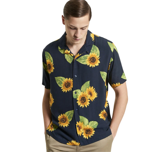 Sunflower Print Short Sleeve Shirt - Black