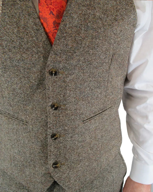 Lazio Houndstooth Suit Waistcoat - Beige / Brown
