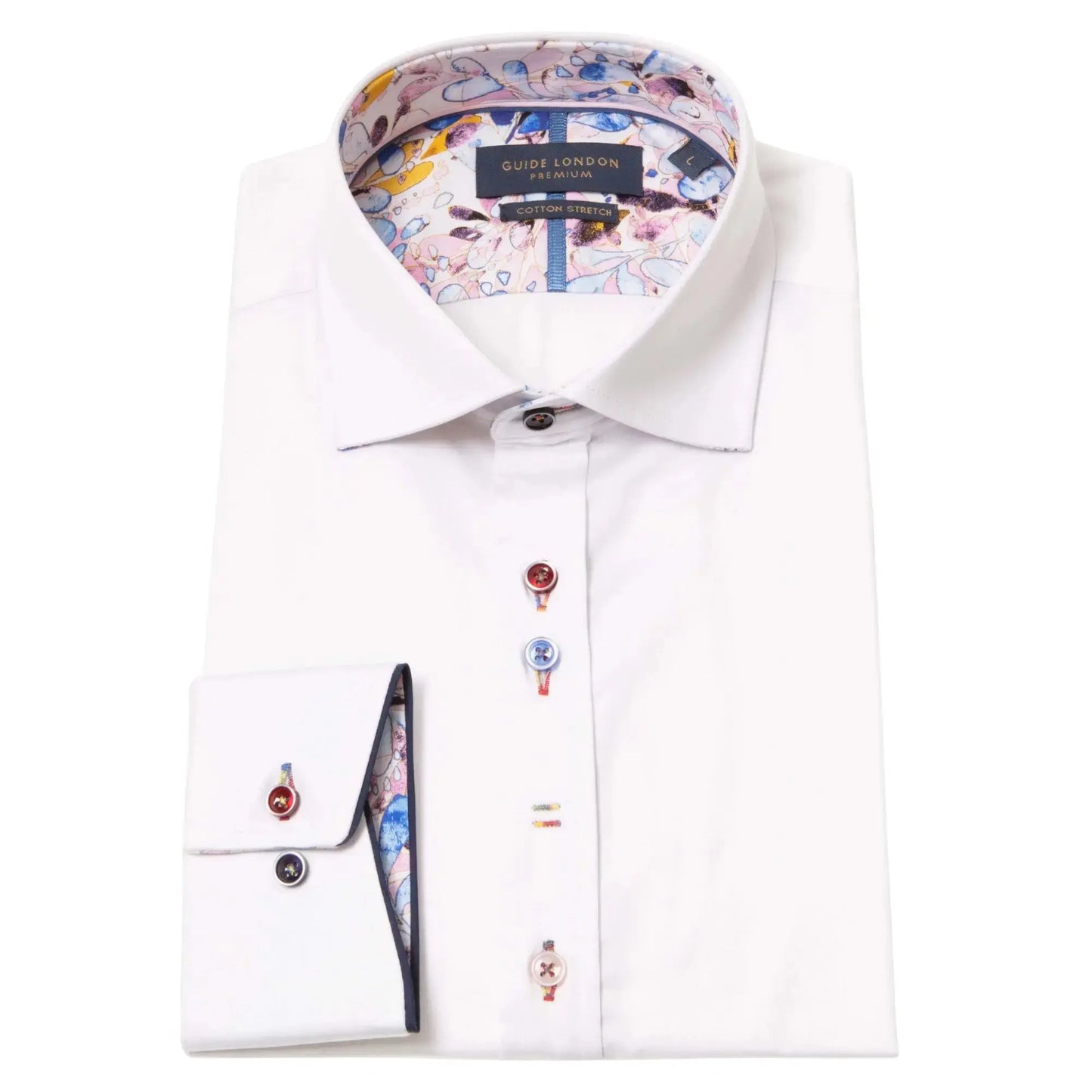 Expertly crafted with meticulous attention to detail, the Abstract Floral Print Cut-Away Collar Shirt in white from Guide is anything but plain. Featuring unique touches like multicoloured buttons, contrasting threads, and vibrant inner lining, this versatile piece adds a pop of personality to any outfit. Upgrade your wardrobe with Guide.
