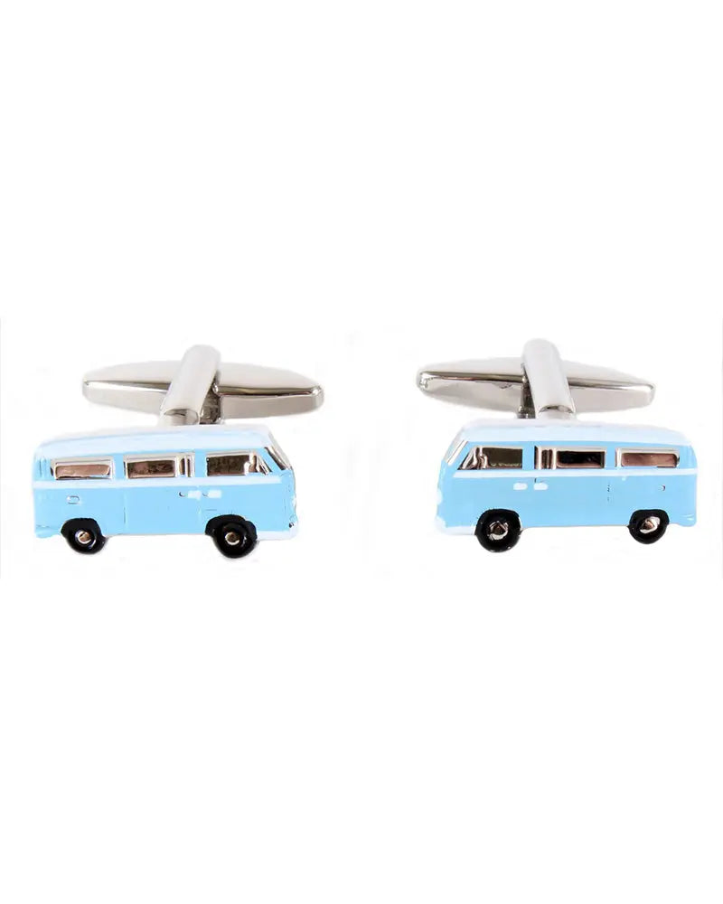 Dalaco Campervan cufflinks in light blue are a fun addition to your wardrobe. Great as a gift for those who love campervans and adventure. They are the perfect accessory to complete your suit accessory collection.