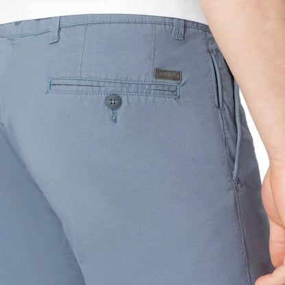 Expertly crafted with a cotton stretch fabric, the Emilio Chino Shorts in Sky Blue offer both comfort and style. Featuring a slim leg silhouette, front zip closure with a button, and functional side-slip and jetted pockets, these shorts are perfect for any casual occasion. Complete with an embroidered brand mark on the back, these shorts are a must-have for any wardrobe.