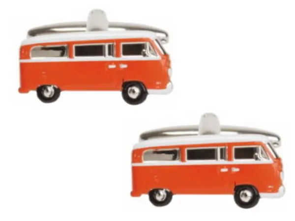 Dalaco Campervan cufflinks in orange are a fun addition to your wardrobe. Great as a gift for those who love campervans and adventure. They are the perfect accessory to complete your suit accessory collection.