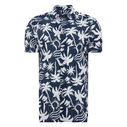 Palm Tree Print Short-Sleeve Shirt - Navy