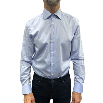 The sky blue sateen long-sleeve shirt from Marnelli Sartoria is a great way to add some style to your smart-casual wardrobe. Made with 100% breathable Cotton, this shirt offers a contemporary fit that combines a luxurious feel with comfort. Wear the shirt with dark denim jeans or chinos in the warmer weather. It also looks great when worn with a suit to add a touch of colour to your tailoring.